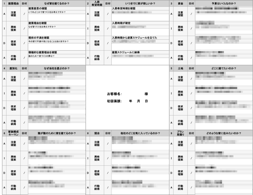 住宅営業のヒアリングに関して、前回の記事と今回の記事の内容を、新人営業でも最短でヒアリングできるようになってもらうために「住宅営業ヒアリング曼荼羅チャート」にまとめて実践し始めています。
