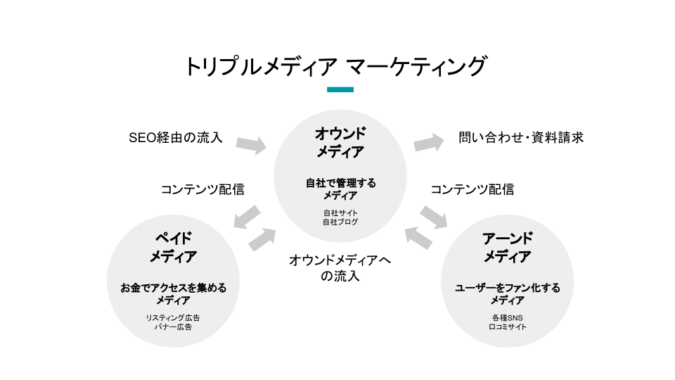 インターネットが登場して生まれたデジタルマーケティング時代に、消費者とつながる方法を3つのメディアに分類して体系化した概念になります。