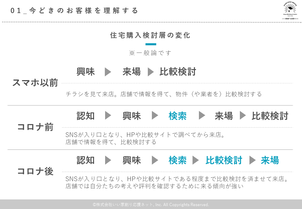 来場前にある程度の比較検討が終わってしまうということは、お客様が比較検討するための情報をネット上に提供していなければ、土俵にも上がれていないことになります。