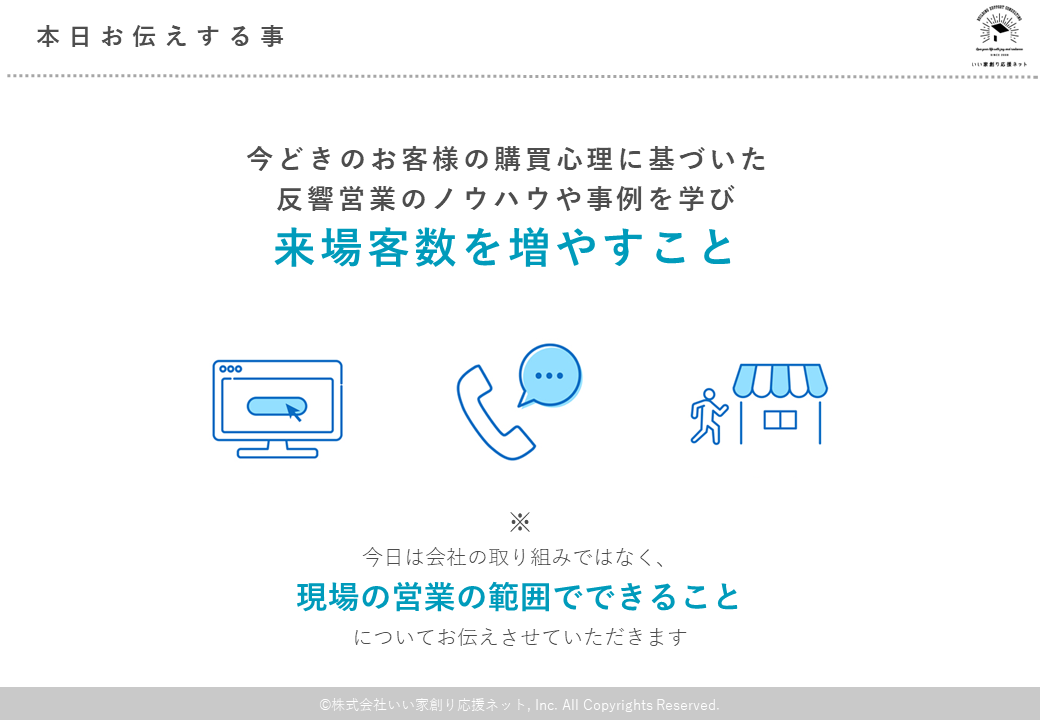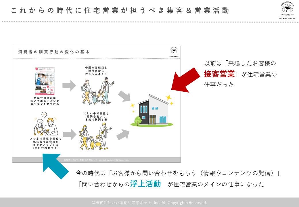 この2点に取り組んでいくことが、厳しい市場状況の中でも安定し反響と受注を確保するためには欠かせません。